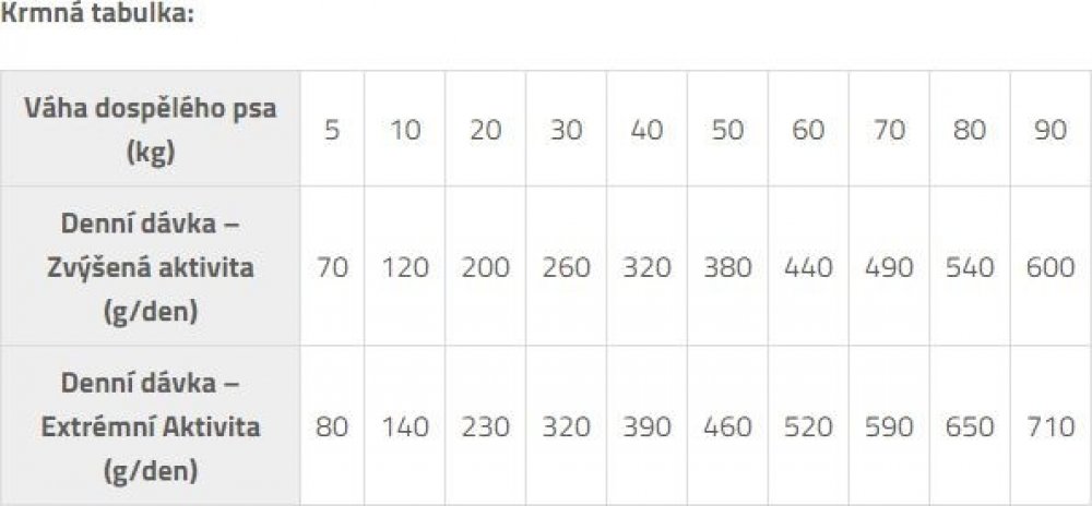 - Určeno pro aktivní psy s citlivým zažívacím traktem
