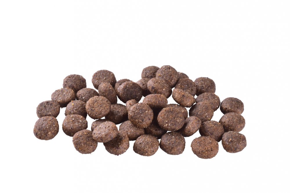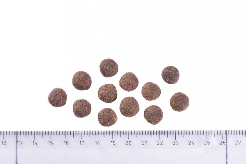 Složení: losos 50 % (dehydrovaný losos, hydrolyzovaný losos), brambory 26 %, sušená jablečná dužina, kuřecí tuk, lososový olej 3 %, přírodní aroma, hrachová mouka, glukosamin 260 mg/kg, frukto-oligosacharidy 200 mg/kg, chondroitin sulfát 200 mg/kg, mannan-oligosacharidy 150 mg/kg, juka schidigera 150 mg/kg, semena ostropestřce mariánského 90 mg/kg, β-glukany 50 mg/kg, sušený srdečník 50 mg/kg, sušený rakytník řešetlákový 50 mg/kg, probiotika Lactobacillus helveticus HA – 122 inaktivováno 15x109 buněk/kg.