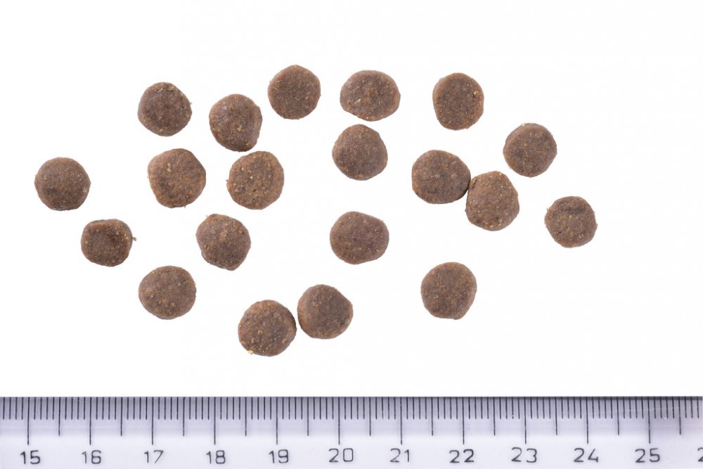 Analytické složky: hrubý protein 30,0 %, hrubý tuk 18,0 %, vlhkost 10,0 %, hrubý popel 7,0 %, hrubá vláknina 2,5 %, vápník 1,2 %, fosfor 0,9 %, sodík 0,5 %, omega-3 mastné kyseliny 1,3 %, omega-6 mastné kyseliny 2,3 %, EPA (20:5 n-3) 0,12 %, DHA (22:6 n-3) 0,16 %.