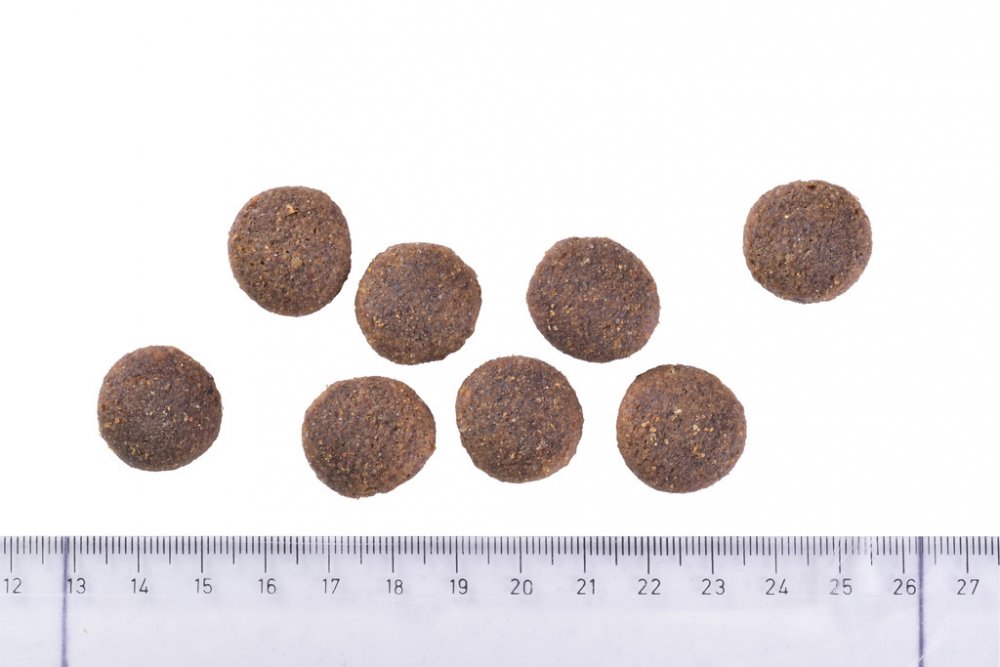 Analytické složky: hrubý protein 26,0 %, hrubý tuk 14,0 %, vlhkost 10,0 %, hrubý popel 7,0 %, hrubá vláknina 3,0 %, vápník 1,3 %, fosfor 0,9 %, sodík 0,4 %, omega-3 mastné kyseliny 0,5 %, omega-6 mastné kyseliny 1,7 %, EPA (20:5 n-3) 0,05 %, DHA (22:6 n-3) 0,1 %.