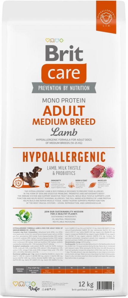 Brit Care Hypoallergenic Adult Medium Breed Lamb 12 kg