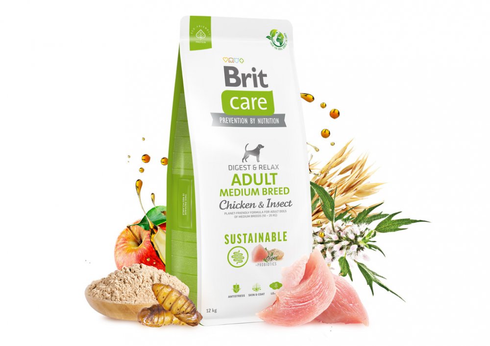 Brit Care Sustainable Adult Medium Breed – Superprémiové krmivo pro dospělé psy středních plemen (10 - 25 kg) s udržitelným složením z hmyzu a kuřete
