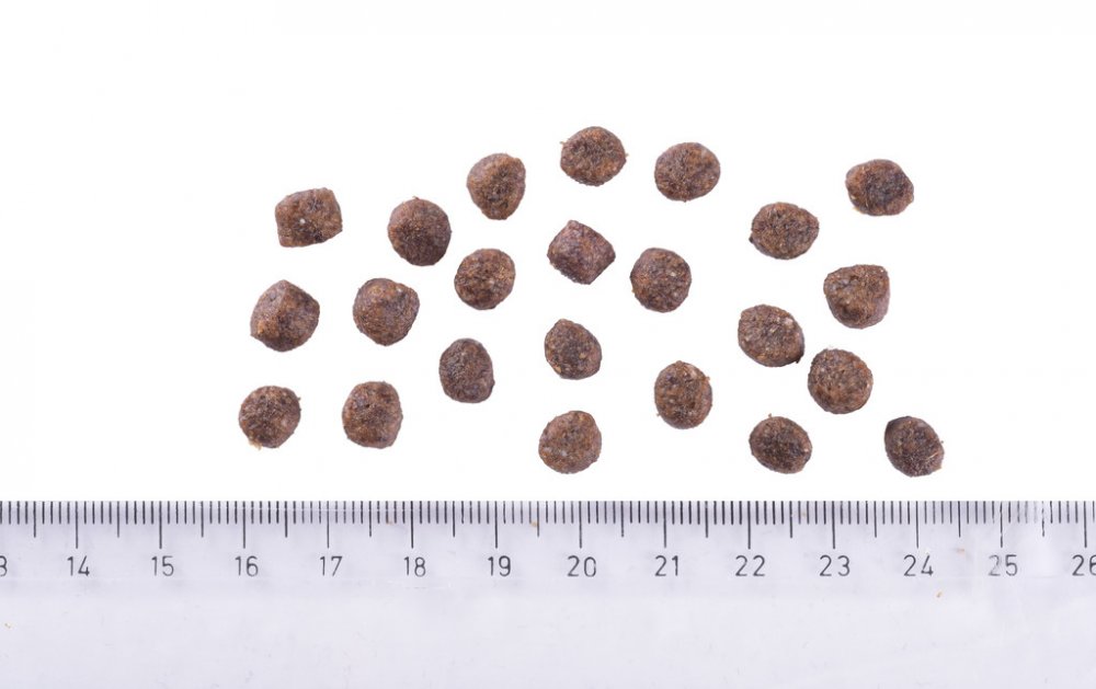 Analytické složky: hrubý protein 28,0 %, hrubý tuk 17,0 %, vlhkost 10,0 %, hrubý popel 6,5 %, hrubá vláknina 3,0 %, vápník 1,4 %, fosfor 1,0 %, sodík 0,3 %, omega-3 mastné kyseliny 0,4 %, omega-6 mastné kyseliny 2,7 %, EPA (20:5 n-3) 0,05 %, DHA (22:6 n-3) 0,1 %.