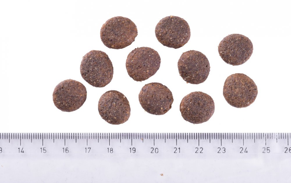 Analytické složky: hrubý protein 28,0 %, hrubý tuk 15,0 %, vlhkost 10,0 %, hrubý popel 5,7 %, hrubá vláknina 2,2 %, vápník 1,3 %, fosfor 1,1 %, sodík 0,3 %, omega-3 mastné kyseliny 0,4 %, omega-6 mastné kyseliny 1,9 %, EPA (20:5 n-3) 0,05 %, DHA (22:6 n-3) 0,1 %.