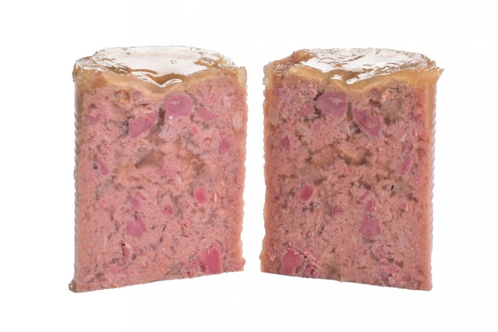 Složení: 26% losos, 24% kuře, 8% celá kuřecí játra, 12% srdce & plíce, 28,5% vývar, 1% minerály, 0,5% lososový olej.