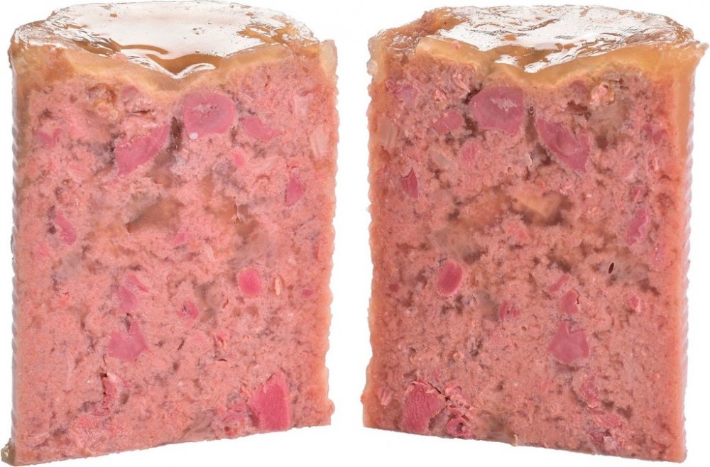 Skutečné kousky masa s celými kousky vnitřností v paté.