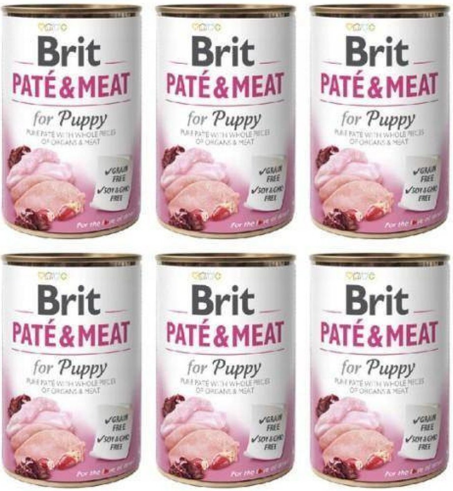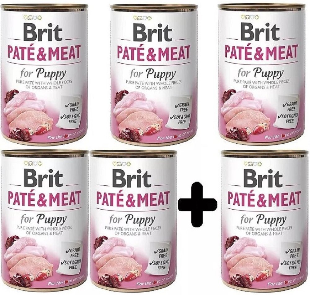 Doplňkové krmivo pro štěňata a mladé psy. Skutečné kousky masa s celými kousky vnitřností v paté. Vysoký podíl kvalitního masa a jeho šetrné zpracování je zárukou excelentní chuti i vůně. Lahodné kombinace skutečných masových kousků a orgánového masa v paté dokonale uspokojí i ty nejnáročnější psí gurmány. Brit Paté & Meat je ideálním doplňkem i ke granulím. Pomáhá zlepšit příjem krmiva a doplnit tekutiny. BEZ OBILOVIN – BEZ SOJI – BEZ GMO Krmný návod: viz. tabulka na obale. Složení: 29% kuřecí maso, 21% krůtí maso, 8% celá kuřecí játra, 12% srdce & plíce, 28,5% vývar, 1% minerály, 0,5% lososový olej. Jakostní znaky: hrubé proteiny 11,5%, vlhkost 75%, hrubé oleje a tuky 8%, hrubé popeloviny 6%, hrubá vláknina 0,4%, vitamin D3 250 m.j./ kg, vitamin E 100 mg / kg, zinek 15 mg / kg, železo 10 mg / kg, mangan 3 mg / kg, jód 0,75 mg / kg, měď 0,5 mg / kg, biotin 0,2 mg / kg.
