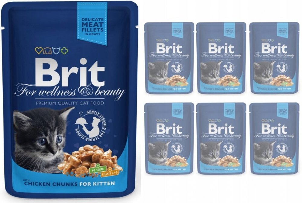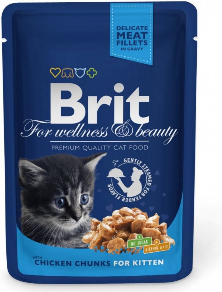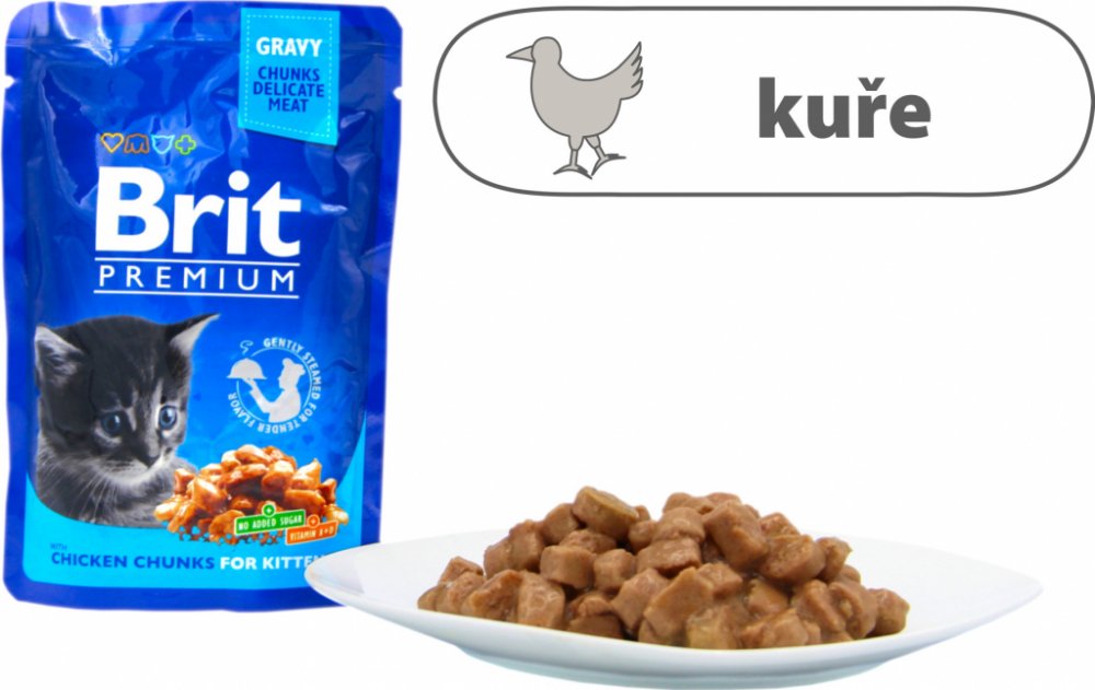 Masové kapsičky Brit Premium pro koťata s kuřecími kousky v omáčce. Detailní popis produktuSkvělé masové kapsičky Brit Premium pro koťata. Výběr chutí respektuje přirozené preference koček i jejich nutriční potřeby z hlediska fáze věku či speciální výživy.Delikátní šťáva podtrhuje chuť masových kousků a dodá kočce potřebné tekutinyKapsičky jsou připravovány uniktání šetrnou metodou vaření v páře p...