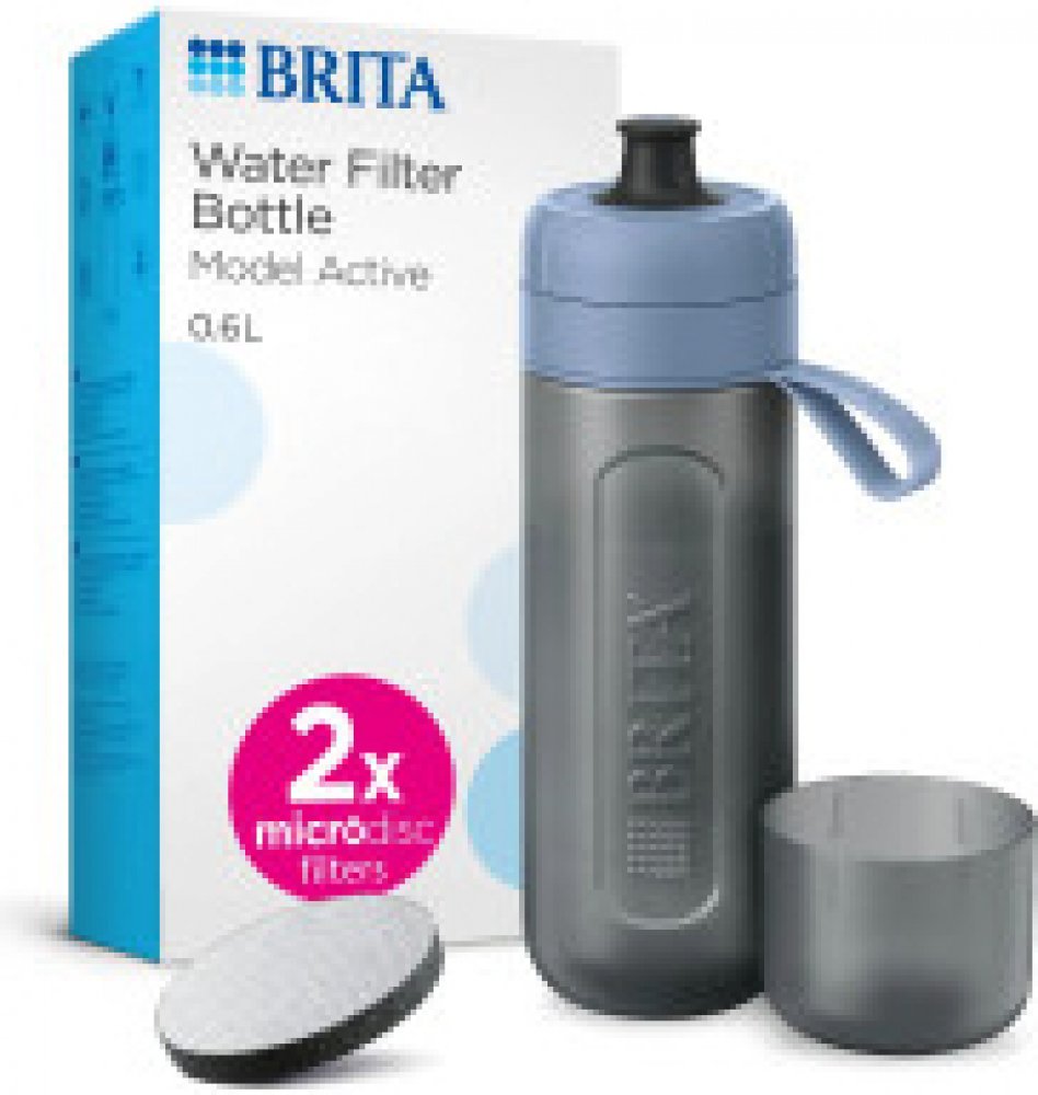Filtrační láhev Brita Active - alternativy skladem Brita filtrační láhev na vodu Fill and Go Active, modráSportovní filtrační lahev Brita Fill and Go Active modrá je navržena pro lidi, kteří chtějí mít i při sportu stále po ruce chutnou a kvalitní filtrovanou vodu. Láhev je vybavena uhlíkovým filtrem, který je vyrobený ze skořápek z kokosových ořechů a při pití efektivně filtruje vodu, kterou pijete.Filtrační technologie MicroDisc Pure-Taste® účinně snižuje obsah chlóru a tím zlepšuje chuť vody a přitom zachovává obsah minerálů - vápníku a hořčíku. Zároveň filtruje i mikročástice větší než 15 μm a a jiné nečistoty (pokud jsou obsaženy ve vodě z vodovodu). S jedním MicroDisc filtrem se můžete těšit až na 60 l / 4 týdny chutné filtrované vody. Neobsahuje BPA. Stylový design. Flexibilní možnosti použití (lze použít s i bez filtrů). Snadno se čistí a lze mýt v myčce na nádobí. Navrženo, aby se vešla do většiny cyklo držáků na láhve. Obsahuje 2 vodní filtry Brita MicroDisc. Celkový objem lahve 0,6 l. Parametry Rozměry (h × v × š) 7,6 × 26 × 7,6 cm EAN 4006387128135 Hmotnost 0,15 kg Barva modrá Materiál plast Objem (ML) 600 ml Bezpečnostní zdroje BRITA SE, Heinz-Hankammer-Straße 1, 65232 Taunusstein.Tel.: + 49 800 500 19 19, E-mail: dispenser.resellers@brita.net
