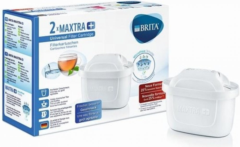 MNZ-Brita Maxtra Plus Náhradní filtr pro čištění vody dvojitý 2 v 1 MAXTRA+ 150 litrů filtrované vody: Filtrační technologie MAXTRA+ poskytuje až 150 litrů měkké a chutné pitné vody s jediným filtrem. To odpovídá průměrně 8 lahvím vody! Filtr MAXTRA+ je kompatibilní se všemi modely filtračních konvic BRITA. Objevte technologii MAXTRA+ MicroFlow: Díky technologii MicroFlow filtruje vodovodní vodu MAXTRA+ ve třech stupních: 1. Předfiltr Pokud je potrubí ve vaší budově staré a obsahuje hrubé nečistoty podobné písku - které mohou být ve vaší vodě z kohoutku - 2. Iontoměničová pryskyřice těžké kovy - jako je vápník - olovo a měď - 3. Aktivní uhlí vyrobené z kokosových skořápek Odfiltruje chlor a další látky, které kazí chuť a vůni vody. Zachovává užitečné minerály, jako je vápník a hořčík. v 99 % případů ji uživatelé BRITA doporučují ostatním: Podle výsledků průzkumu, který v dubnu 2020 provedla agentura Ipsos, 99 % účastníků průzkumu, kteří používají vodu BRITA, ji doporučuje ostatním! BRITA je šetrná k životnímu prostředí: Filtrační konvice BRITA pomáhá snižovat množství jednorázového plastového odpadu. Kromě toho BRITA neprodukuje odpadní vodu. BRITA je ideální pro teplé i studené použití: lze ji používat jako pitnou vodu- stejně jako ji přidávat do horkých nápojů- jako je čaj a káva- a do jídel. Čaj a káva uvařené z filtrované vody BRITA budou mít bohaté aroma- dobrou chuť a čirý vzhled! **Balení obsahuje 2 filtry MAXTRA+.
