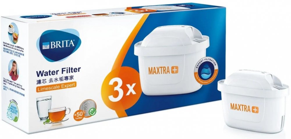Vodní filtr Brita Maxtra+ Hard Water Expert v balení obsahujícím 3 ks filtrů. Nejpokročilejší technologii pro filtrování vody od německého výrobce s více než 50letou tradicí a zkušenostmi.