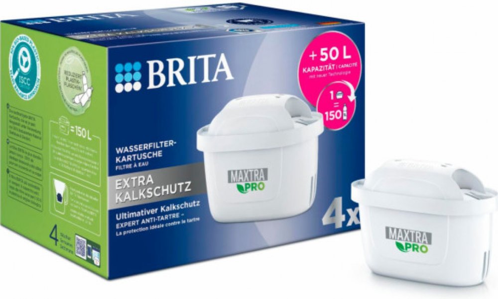Contains 4 MAXTRA PRO Extra limescale protection water filter cartridges