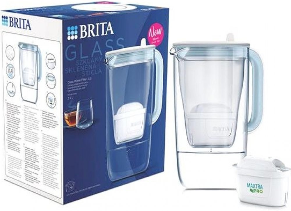 BRITA skleněná konvice je vyrobena z borosilikátového skla, které je lehké, robustní a odolné vůči vysokým teplotám. S celkovým objemem 2,5 litru je ideální pro každodenní použití. Díky technologii BRITA MicroFlow Technology snižuje obsah látek ovlivňujících chuť a aroma, jako je chlór, a redukuje tvorbu vodního kamene, čímž chrání vaše spotřebiče. LED indikátor BRITA Smart Light vás upozorní na nutnost výměny filtru, což zajišťuje optimální výkon filtrace. Elegantní světle modrý design se hodí do každé moderní kuchyně a díky použití 60 % recyklovaného skla je šetrná k životnímu prostředí.