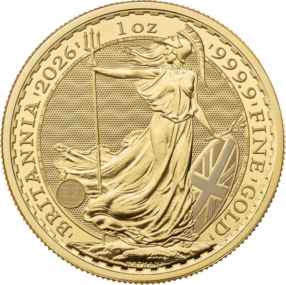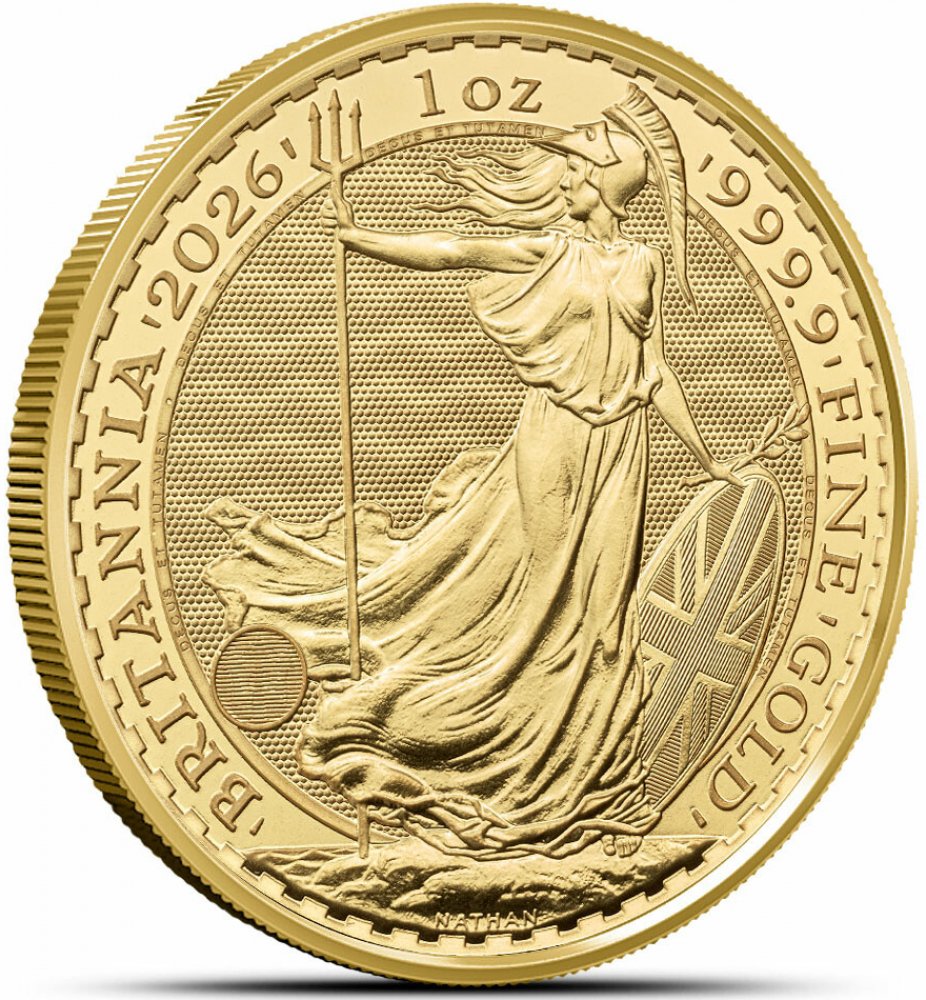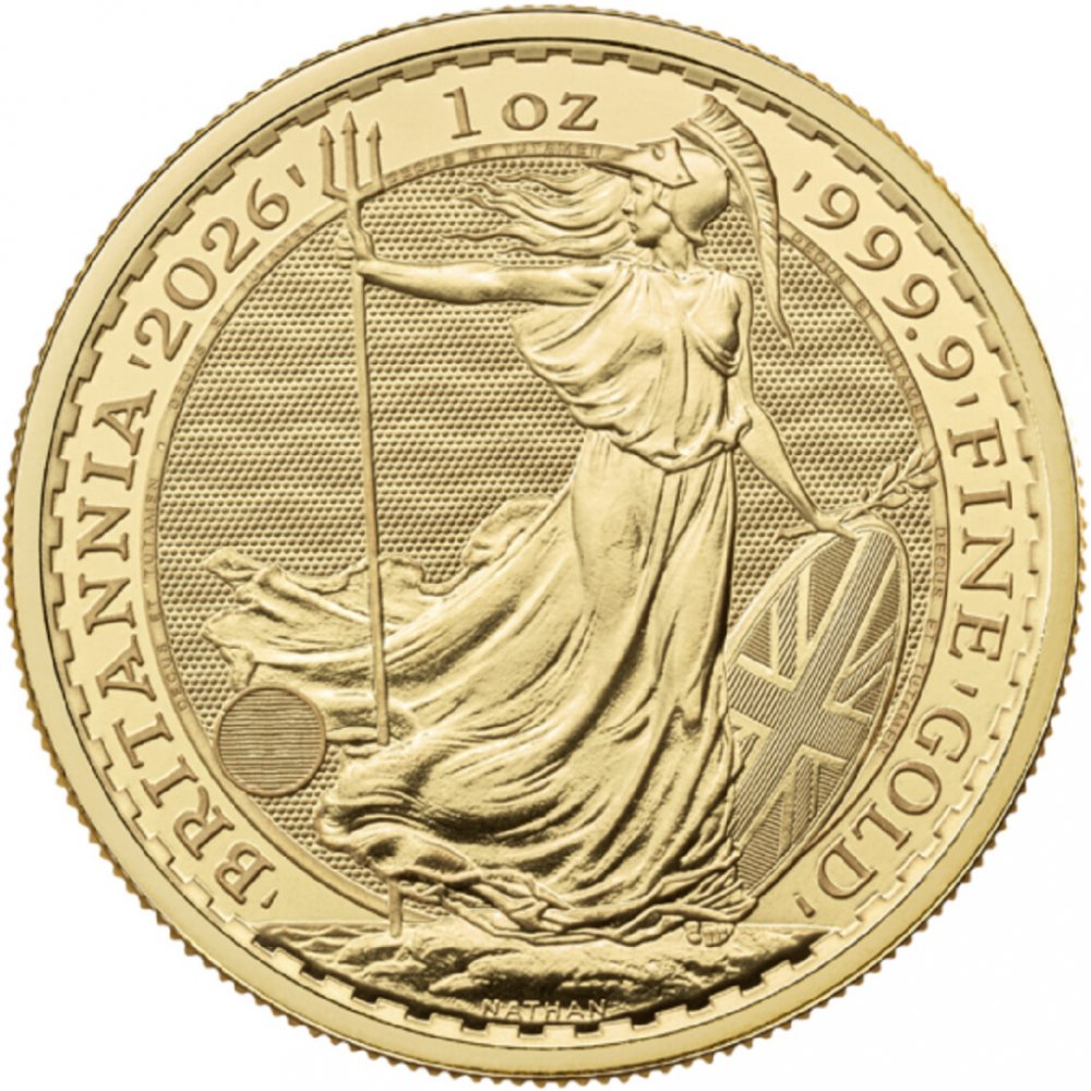 mince 31.1035 g The Royal Mint standard 2026 999.9 / 1000 Britannia pro investory 32.69 mm s vroubkovanou hranou ražené Velká Británie