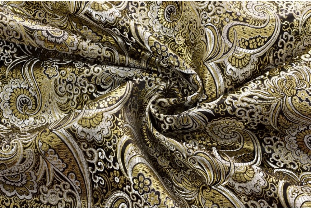 Brokát - Černý se zlatým vzorováním