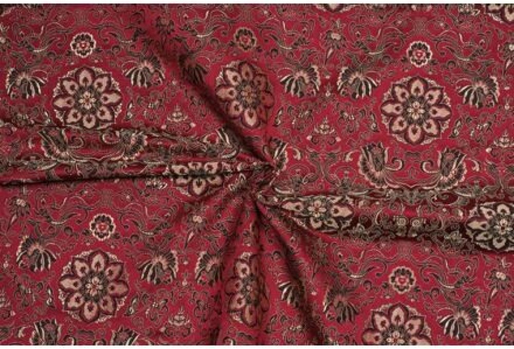 Brokát je krásná, honosná látka tkaná složitou žakárovou technikou, která dovoluje vytvářet vysoce propracované vzory. Brokát na první pohled zaujme zářivými barvami, efektním střídáním matných a lesklých ploch a mírně reliéfním povrchem. V historii patřil mezi ty nejlepší a nejprestižnější látky, a ani dnes se na tom nic nezměnilo. Tento brokát je utkán z velmi jemných nití (osnova je polyesterová, útek viskózový), ale je pevný a nesplývavý, hodí se proto na vypasované střihy a oděvy, které mají držet tvar. Ušijete z něj společenské i svatební šaty, sukně a kabátky, ale také slavnostní kabelky a psaníčka. V běžném šatníku se uplatní třeba v podobě pouzdrové sukně, kalhot nebo bundy. Muži mohou mít kravatu, motýlka, vestu, ale i módní brokátové sako nebo smoking. Je vhodný na bytový textil (polštářky, ubrousky, závěsy) a v neposlední řadě je oblíbený na historické a divadelní kostýmy a korzety. Z brokátu se dobře šije, jen počítejte s vyšší třepivostí (doporučujeme širší švové přídavky) a náchylností k zatrhávání nitek. Na podšití se hodí silnější podšívky, například viskózový satén či hedvábný satén nebo serž. Pokud chcete hotový oděv prát, látku vyperte ještě před zpracováním, nebo vysrážejte alespoň napařovací žehličkou.
