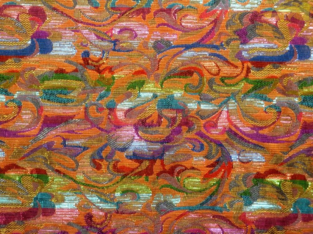 Barevný brokát. Používají se na společenské oděvy - saka, sukně apod., historické kostýmy a také se používají k dekoračním účelům.