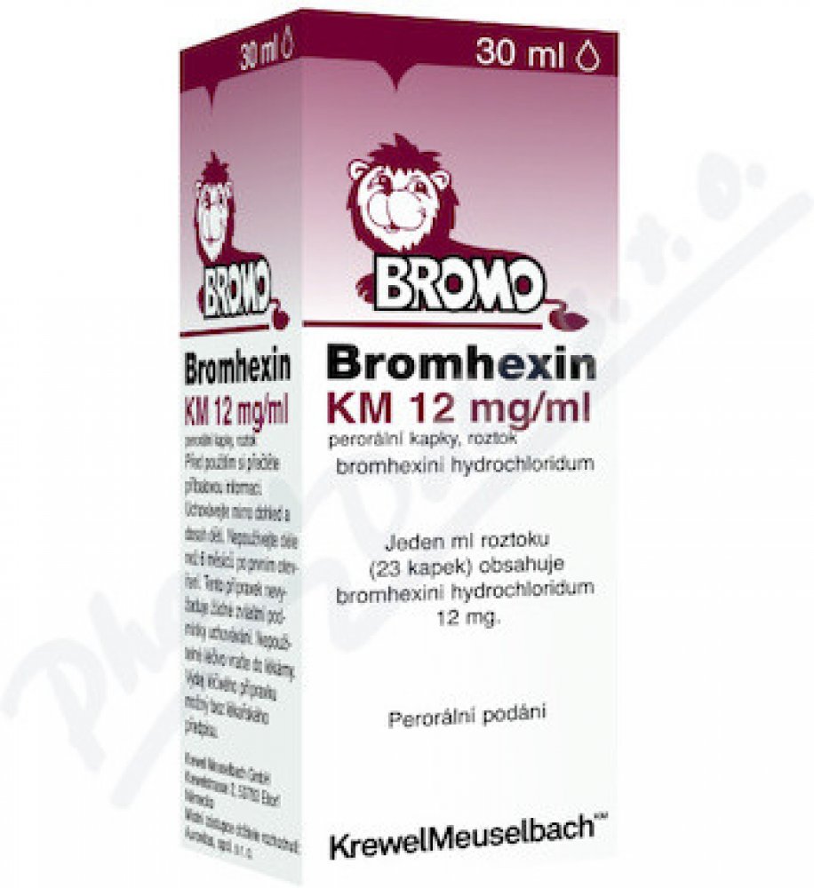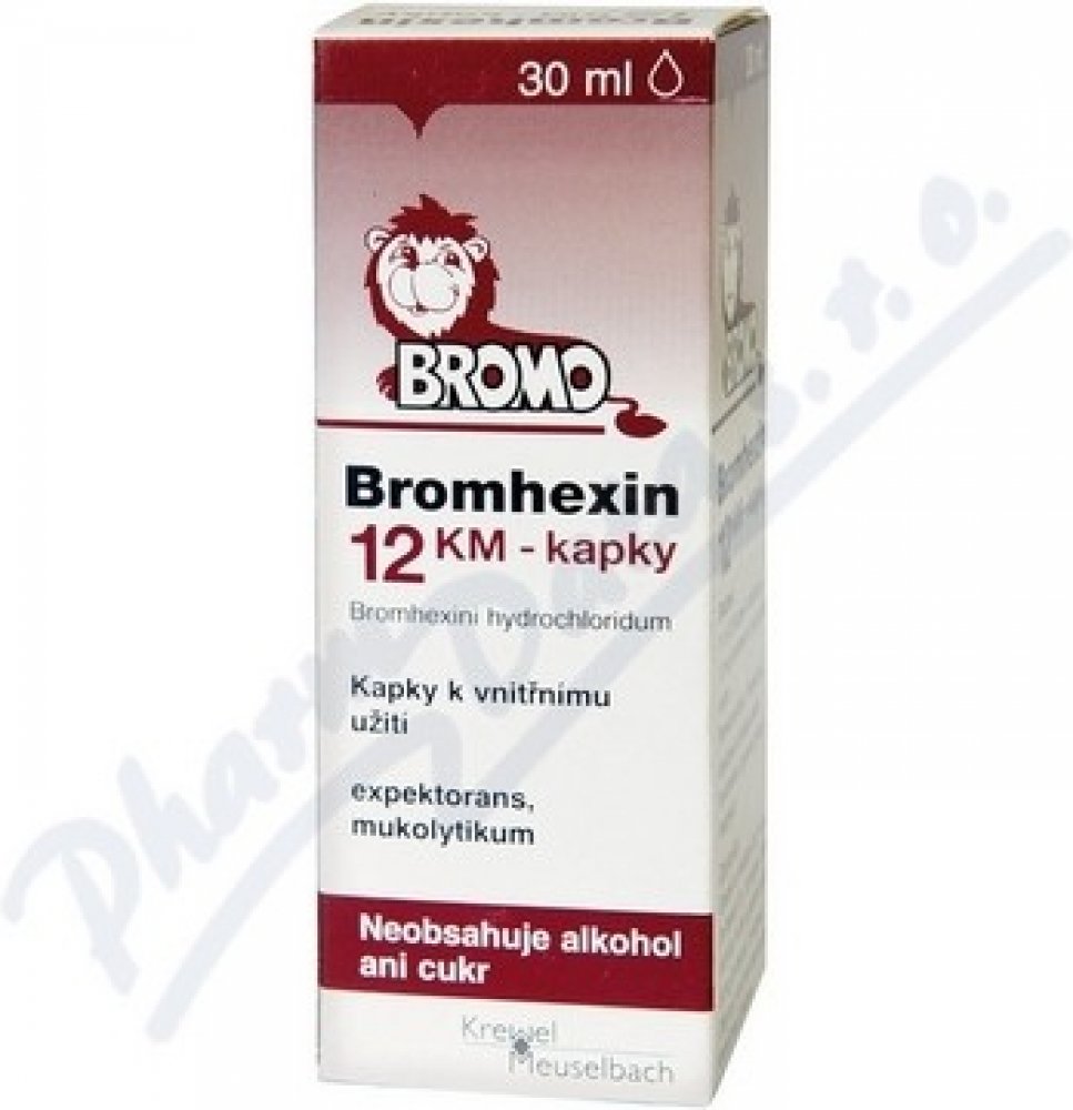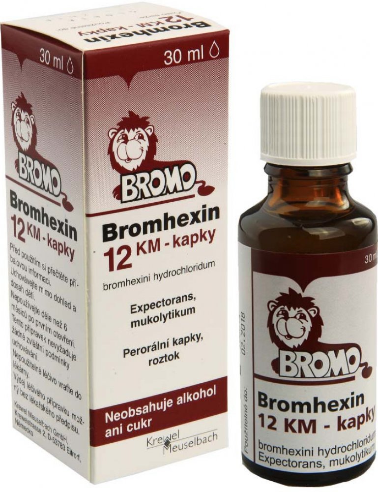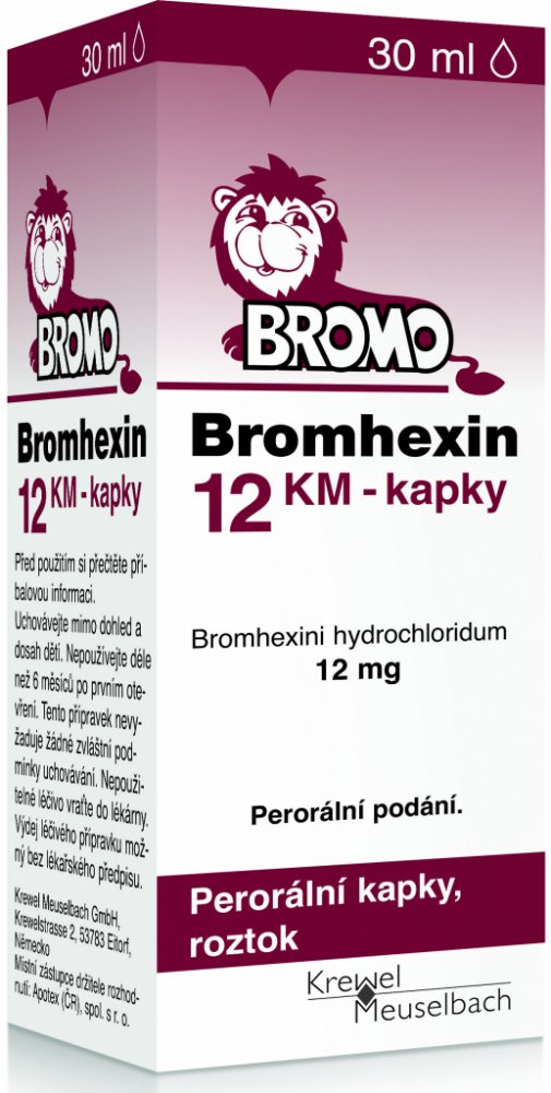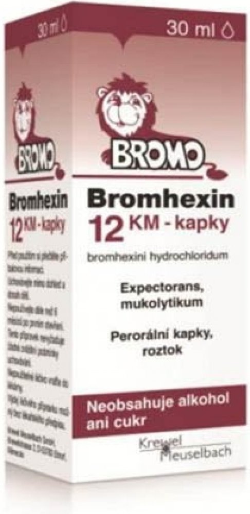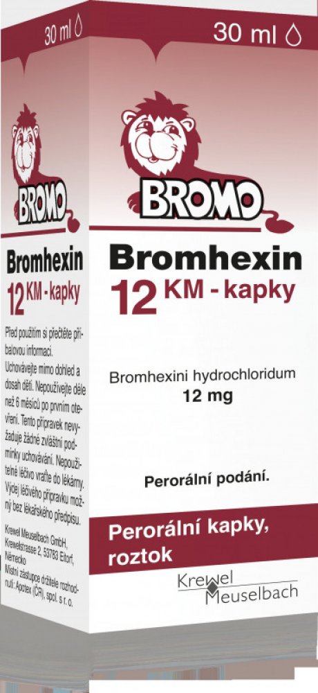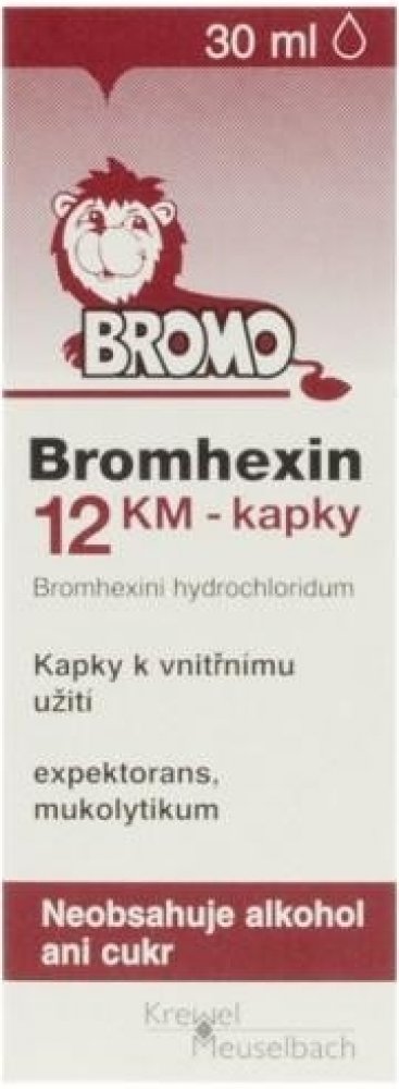 Bromhexin 12 KM - kapky je léčivý přípravek ke zkapalňování a rozpouštění hlenu při onemocněních dýchacích cest, zejména s dlouhodobě přetrvávající tvorbou hustého hlenu