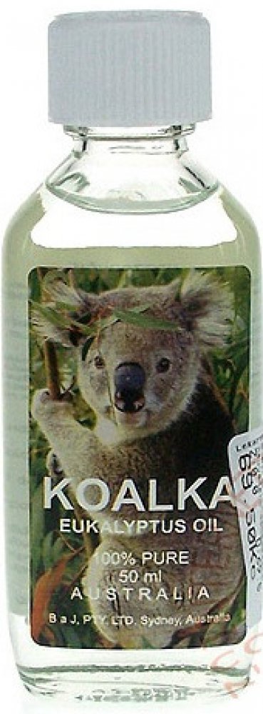 KOALKA eukalyptus oil 100% pure 50 ml Koalka eukalyptus oil 100% pure se používá zejména při nachlazení dětí. Vtírá se do pokožky prsou a na zádech.
