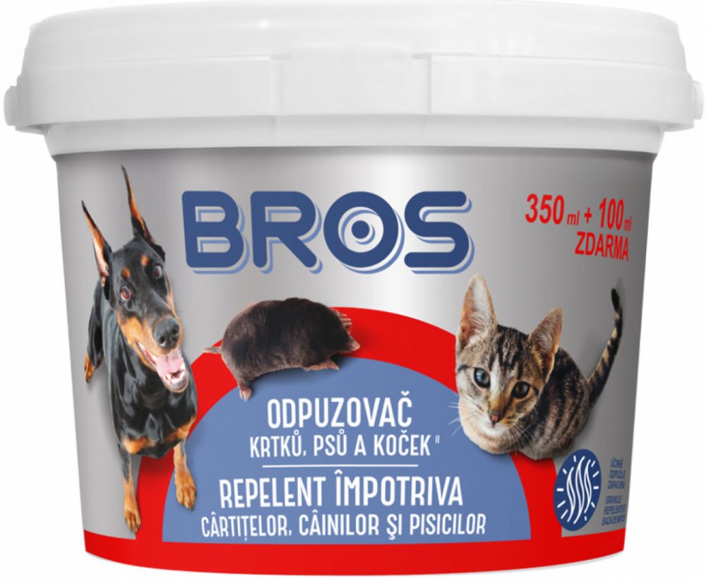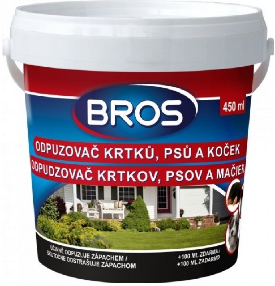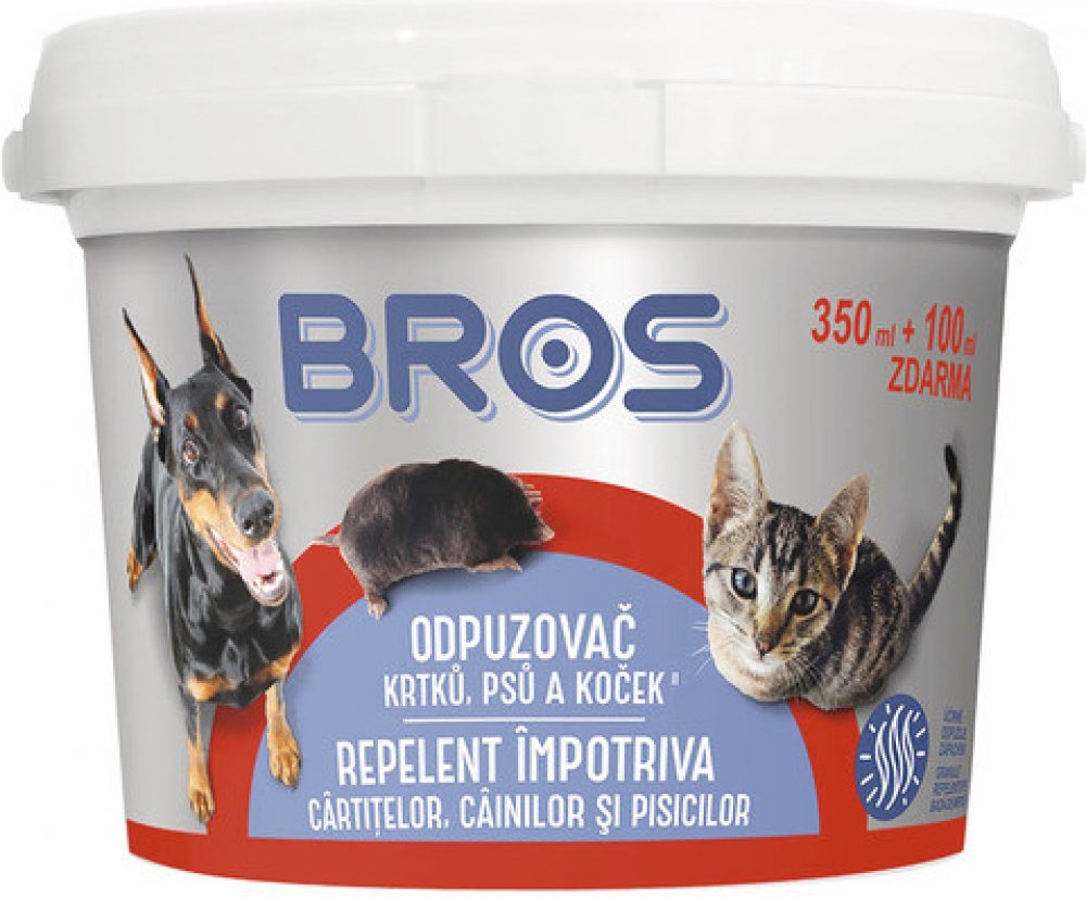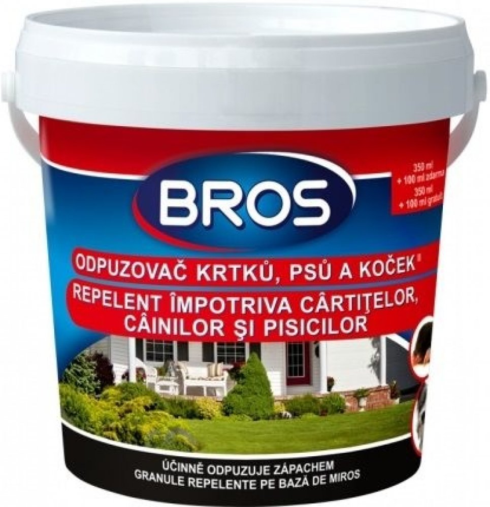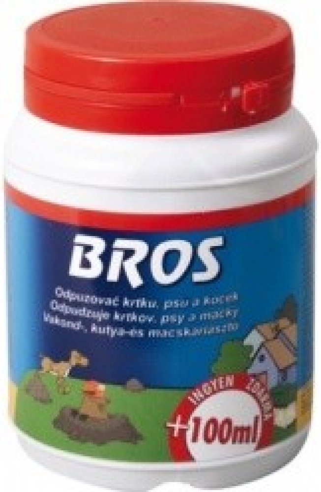 Bros pachový ohradník je ideální na ochranu zahrad a dětských hřišť před nežádoucím působením krtků, psů a koček. Odpuzovač krtků, psů a koček je přípravek ve formě prášku určený k účinnému odpuzení zvířat zápachem z nežádoucích míst jako jsou např. areály letišť, pozemních hydrotechnických konstrukcí a sportovních objektů, dětských hřišť, zahrad apod. Pro člověka není zápach nijak nepříjemný. Cha...