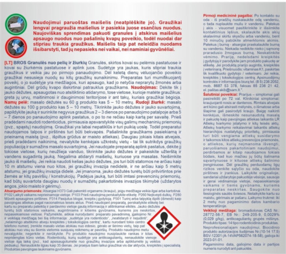 Pelety pro likvidaci myší uvnitř budov a likvidaci potkanů uvnitř i v okolí budov. Obsahují návnadu, která silně láká hlodavce a účinkuje již po prvním použití. Účinek zpožděný několik dní zabraňuje hlodavcům spojovat jed s eliminací jiných jedinců. Výrobek má mumifikující účinek a obsahuje látku, která zabraňuje náhodnému požití osob a zvířat. Výjimečně atraktivní pro hlodavce díky vů...