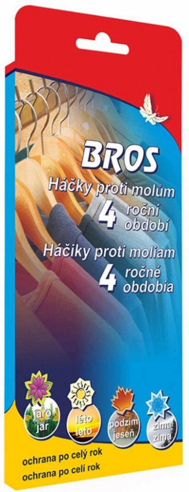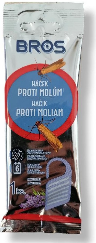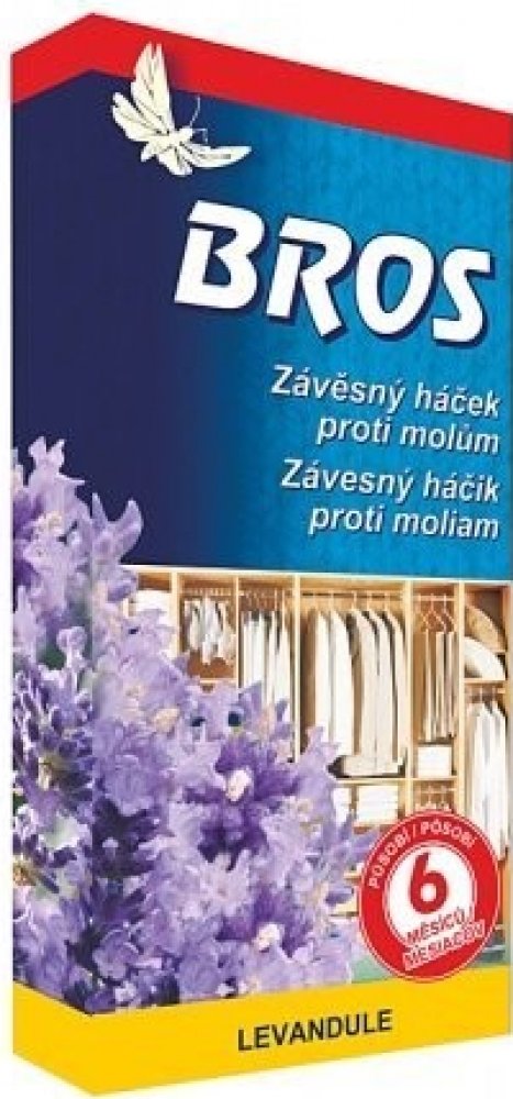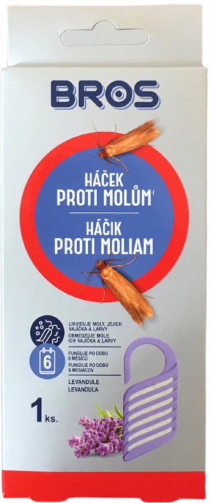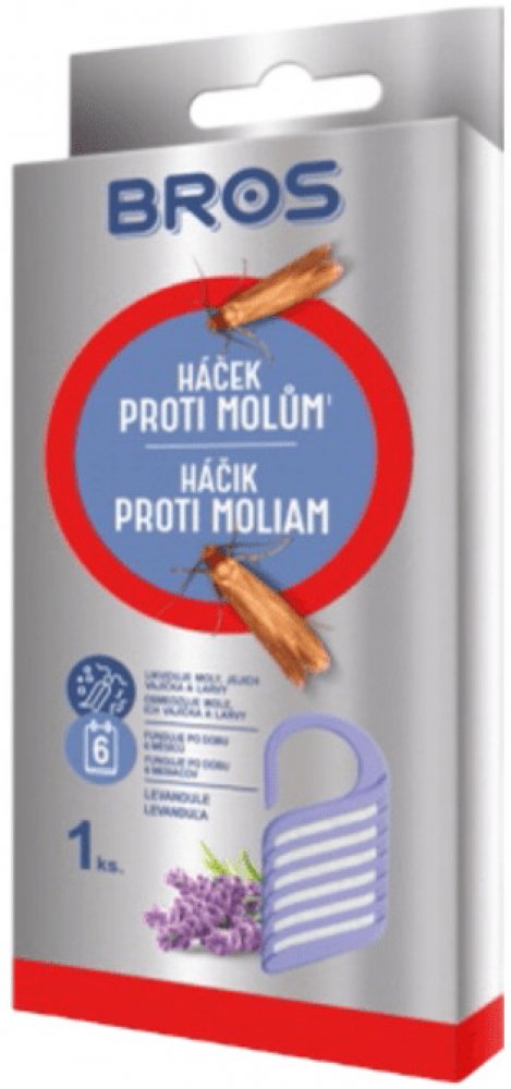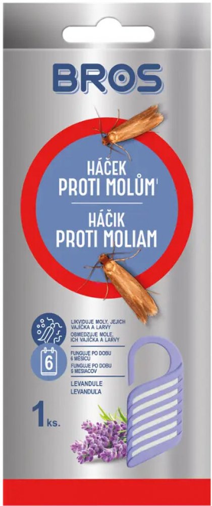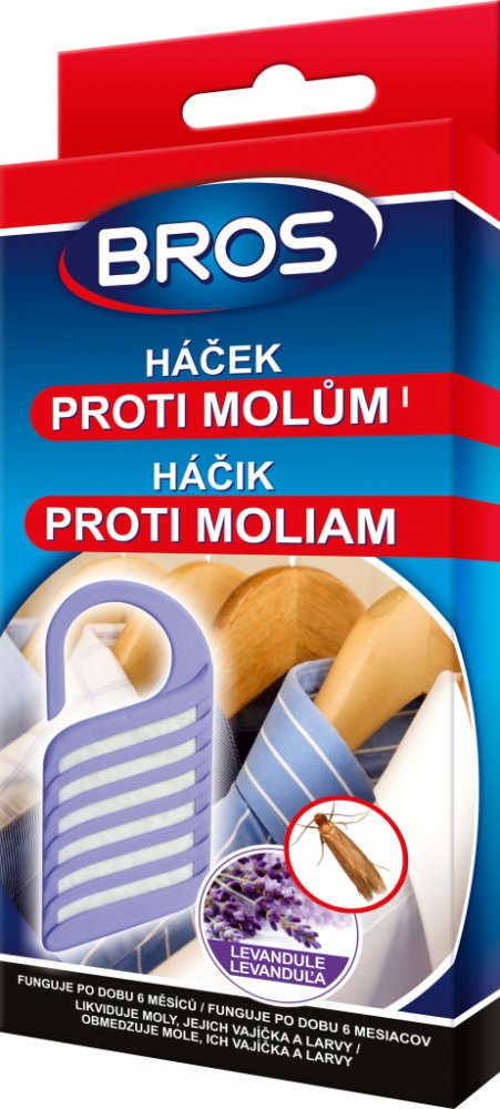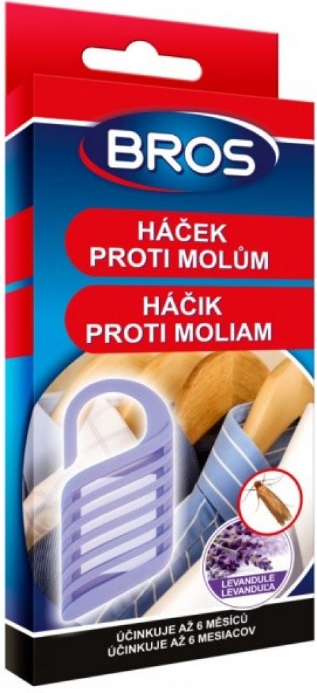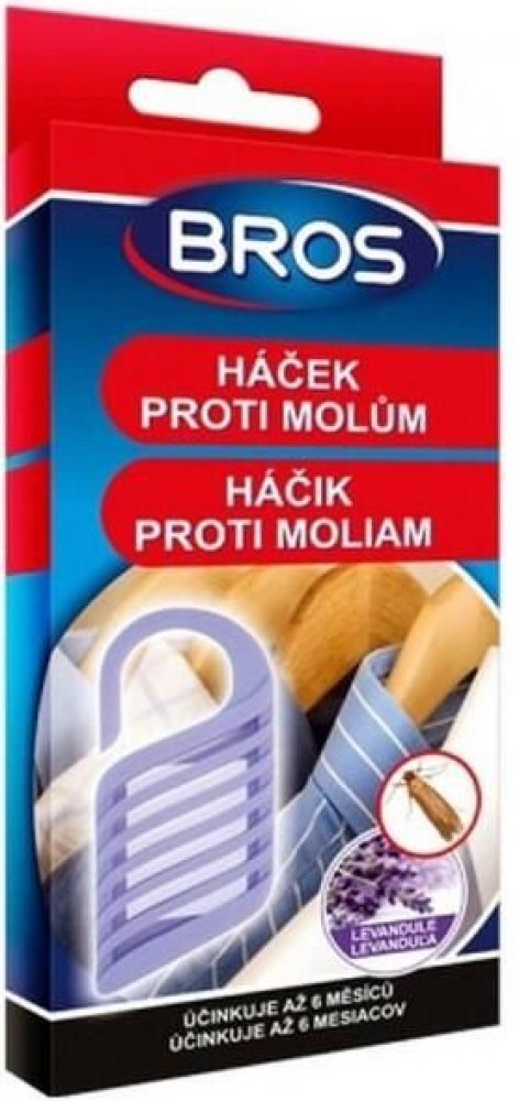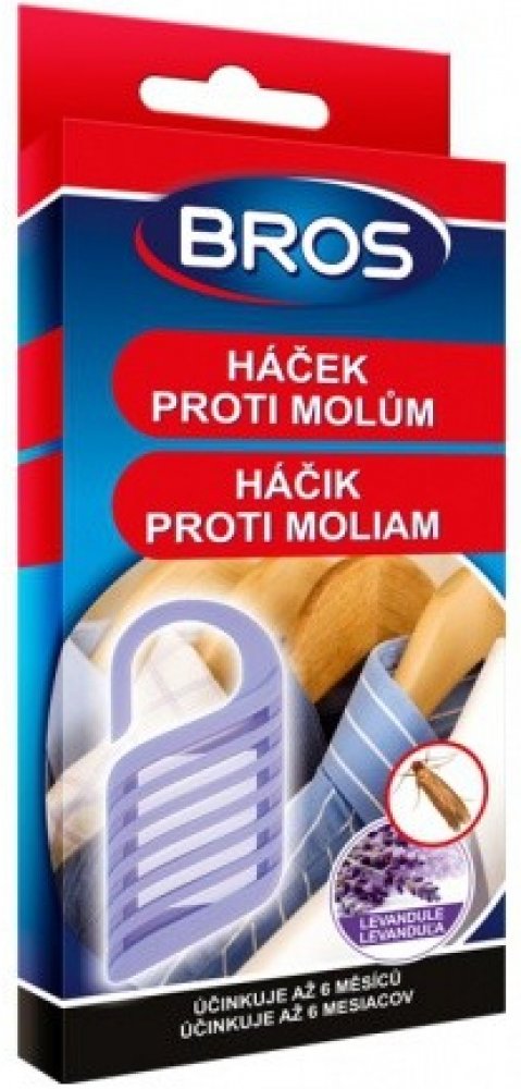 Hledáte spolehlivou ochranu za rozumnou cenu? BROS Háček je osvědčená volba do každé skříně. Stačí ho zavěsit na tyč mezi kabáty a o zbytek se postará účinná látka, která se postupně uvolňuje. Na rozdíl od jiných přípravků, které je třeba měnit každé 3 měsíce, BROS poskytuje ochranu až na 6 měsíců.
