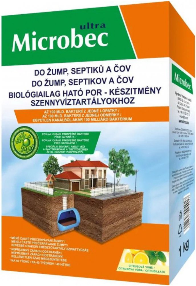 Microbec je mikrobiologický enzymatický přípravek určený k biologickému rozkladu obsahu žump, septiků a čistíren odpadních vod (ČOV). Pravidelné používání tohoto aktivátoru omezuje frekvenci vyprazdňování septiku, eliminuje nepříjemný zápach a zprůchodňuje sanitární rozvody. S vůní citrusů.