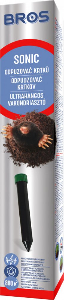 Elektrický odpuzovač účinkuje na krtky, hraboše a jiné hlodavce. Je šetrný vůči životnímu prostředí a nevyžaduje použití chemikálií. Vysílá zvukové signály na frekvenci 400 Hz, čímž odpuzuje hlodavce, které mají dokonalý sluch a schopnost cítit vibrace. V závislosti na typu půdy působí na ploše 500 - 600 m2. Odpuzovač je možné použít na trávnících, květinových záhoncích, rekreačních oblastech, spo...