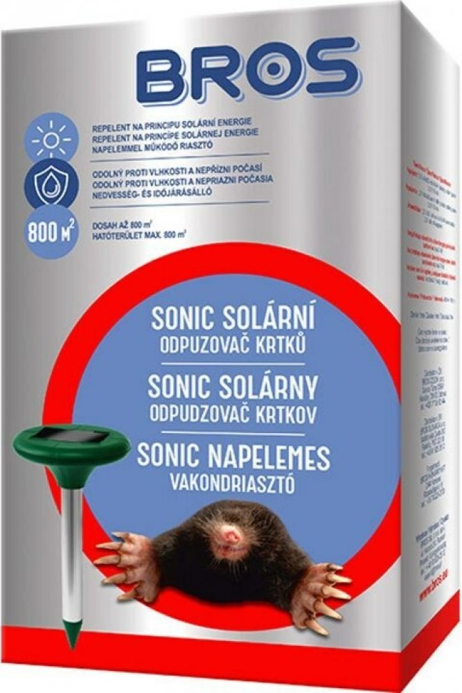 Už vás nebaví krtince hyzdící váš pečlivě udržovaný trávník? Bros solární odpuzovač krtků SONIC je efektivní, ekologický a snadno použitelný způsob, jak se krtků humánně zbavit. Díky solárnímu napájení šetří vaši peněženku a jeho široký dosah ochrání velkou část vaší zahrady. Objednejte si Bros solární odpuzovač krtků SONIC ještě dnes a užijte si krásný trávník bez krtinců!