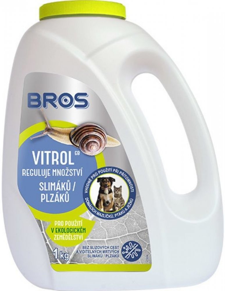 Bros Vitrol je moluskocid, návnada na slimáky k přímému použití ve formě granulované nástrahy. Přípravek je určený k hubení slimáků, plzáků a hlemýžďů při pěstování rostlin ve venkovních prostorách, sklenících a chráněných prostorech.