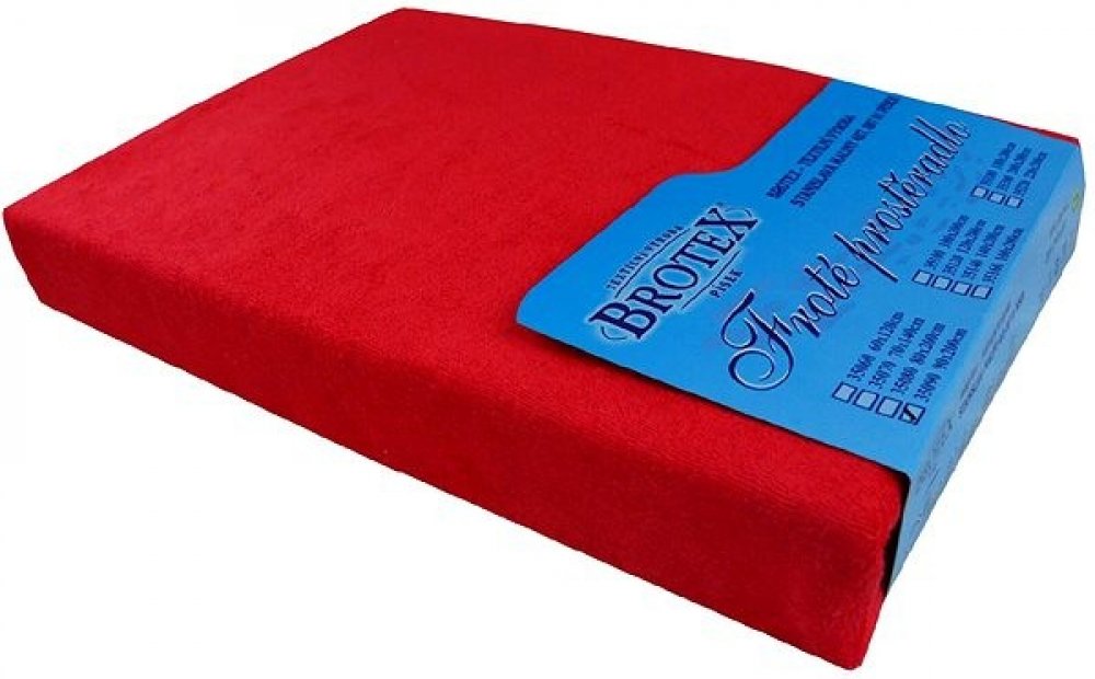 Napínací froté prostěradlo je vyrobeno z kvalitní froté pleteniny o plošné hmotnosti 180g/m2. Pletenina je vyrobena z na omak velmi příjemných a jemných česaných přízí. Guma u napínacích prostěradel je navlečena do tunýlku, což při přetržení gumy umožní její snadnou výměnu. Vybírat můžete z mnoha barevných odstínů. Uvedený rozměr je rozměr lehací plochy matrace, prostěradlo má navíc rohy 25 cm, dobře se napne na matraci do max. výšky 20 cm.