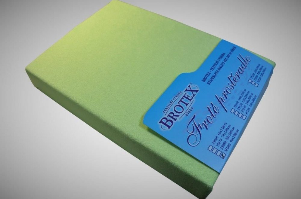 Napínací froté prostěradlo je vyrobeno z kvalitní froté pleteniny o plošné hmotnosti 180g/m2. Pletenina je vyrobena z na omak velmi příjemných a jemných česaných přízí. Guma u napínacích prostěradel je navlečena do tunýlku, což při přetržení gumy umožní její snadnou výměnu. Vybírat můžete z mnoha barevných odstínů. Uvedený rozměr je rozměr lehací plochy matrace, prostěradlo má navíc rohy 25 cm, dobře se napne na matraci do max. výšky 20 cm.