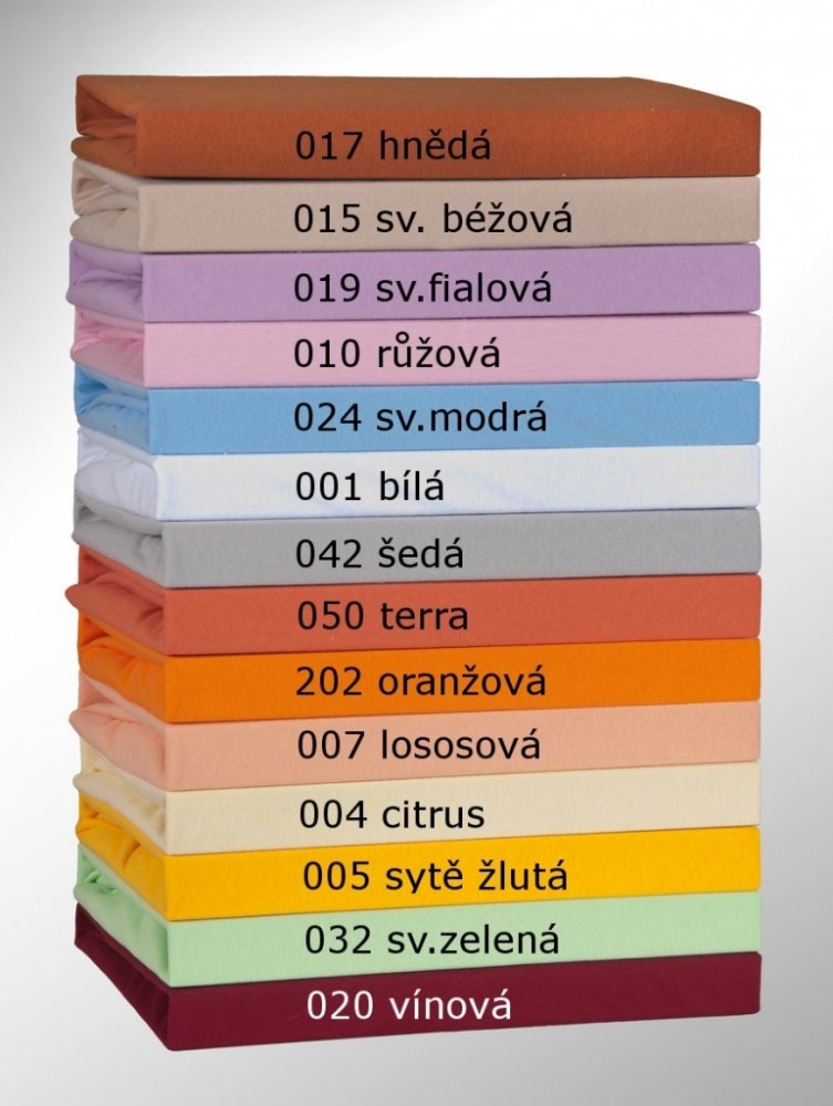 Vybírat můžete z několika rozměrů. Nabízíme prostěradla do dětské postýlky a několik rozměrů na velkou postel. Uvedený rozměr je vždy rozměr lehací plochy matrace. Prostěradlo má navíc rohy 25 cm, dobře se tedy napne na matraci do max. výšky 20 cm. Dětské rozměry mají navíc roh 15 cm, dobře se napnou na matraci do výšky 10 cm.