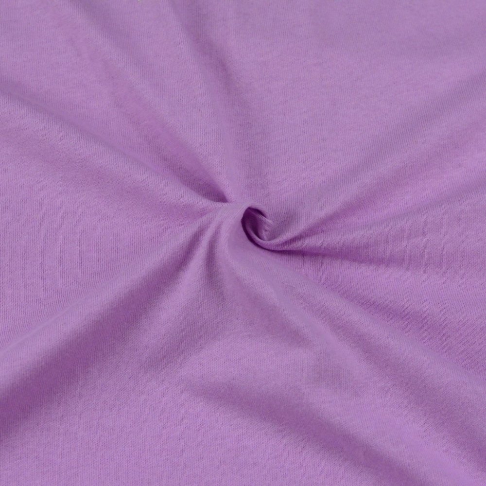Světle fialové napínací prostěradlo jersey je vyrobeno z velmi jemné napínací pleteniny ze 100% bavlny. Plošná hmotnost pleteniny jersey je 145g/m2. Pletenina je hladká, na omak velmi příjemná a jemná.