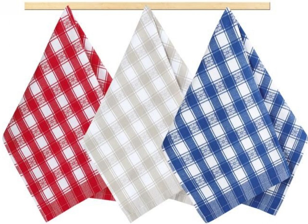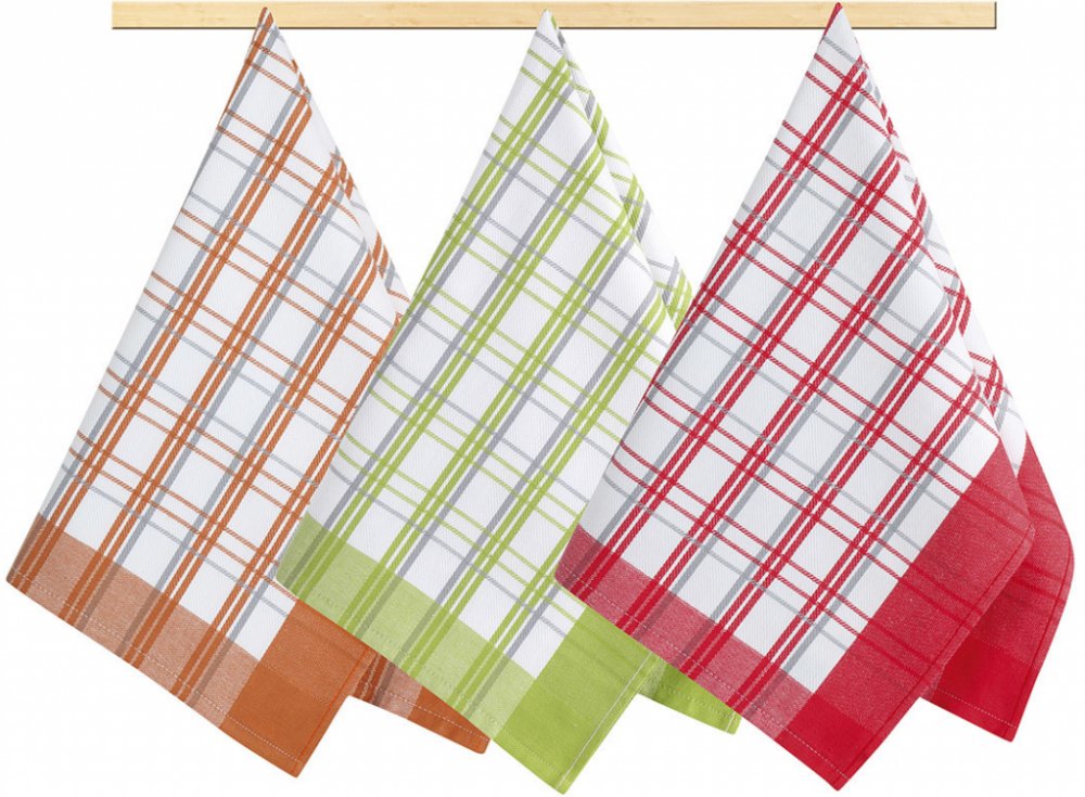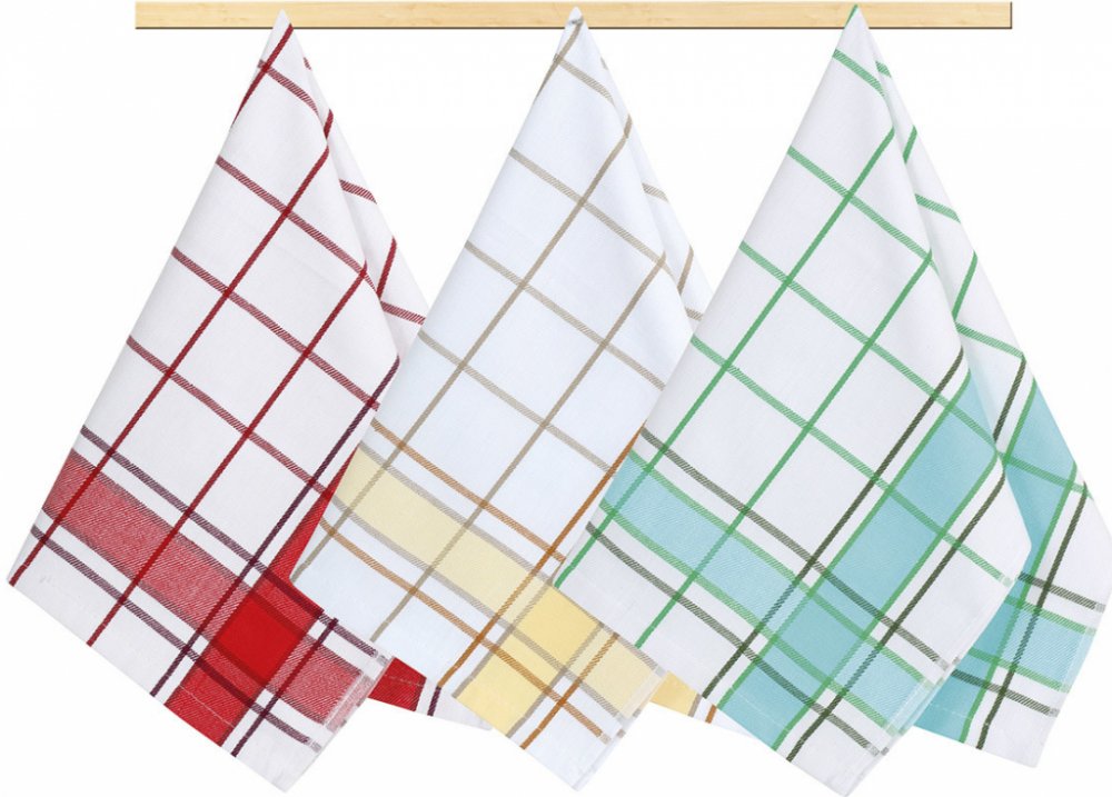 Kuchyňská utěrka 50x70 červená, žlutá, tyrkysová kostka 3ks.