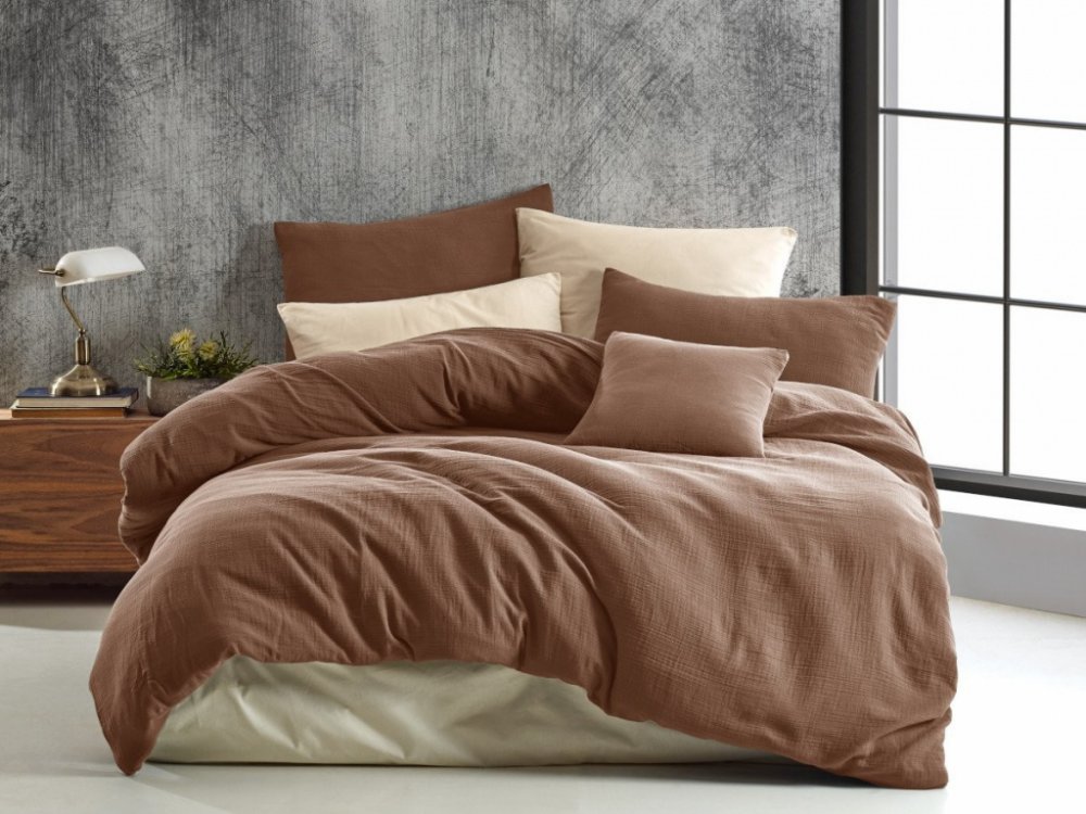 Mušelínové povlečení je vyrobeno z jemného a prodyšného materiálu zvaného mušelín. Mušelín je lehká, bavlněná tkanina s charakteristickou síťovou strukturou. Tato tkanina je oblíbená pro svou měkkost, prodyšnost a schopnost absorbovat vlhkost, což ji činí ideální volbou pro povlečení.Speciální způsob tkaní mušelínu vytváří jemnou, prodyšnou a lehkou tkaninu. Mušelín má charakteristickou síťovou strukturu, která dodává povlečení měkkost a vzdušnost. Tkanina je lehce zvlněná a příjemná na dotek. Mušelínové povlečení je prodyšné a dobře odvádí vlhkost, což přispívá k pohodlnému spaní, zejména v teplejších podmínkách. Mušelínové povlečení je ceněno nejen pro svou estetiku, ale také pro svou praktičnost a pohodlí při spaní. Je vhodné pro lidi hledající lehké, měkké a prodyšné povlečení s moderním vzhledem.Složení: tkanina 100% bavlna - mušelín 130g/m2.Sada obsahuje 1ks povlaku na přikrývku 140x220cm a 1ks povlaku na polštář 70x90cm se zapínáním na zip.Ložní povlečení je vyrobeno s rozměrovou rezervou pro vysrážení po vyprání. Srážlivost je běžnou vlastností bavlněných tkanin, proto doporučujeme povlečení před prvním použitím nejprve vyprat. Teplota praní: 40°, doporučujeme prát naruby zapnuté, nesušit pouze za rohy, používat prací prášek na barevné prádlo s označením "COLOUR"Odstíny barev u fotografií nemusí zcela odpovídat skutečnosti. Záleží na nastavení Vašeho monitoru a na kvalitě použité fotografie.