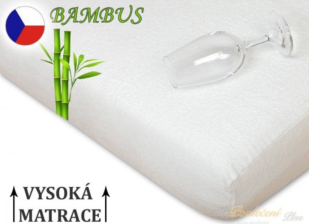 Nepropustné prostěradlo BAMBOO barva Bílá Toto prostěradlo je ušito včetně bočních stran z nepropustného materiálu. Bambusová viskoza s nepropustnou a prodyšnou membránou PU na rubu ochrání matraci proti mechanickému poškození a průniku jakékoliv tekutiny. Vhodné i na vysoké matrace do 28cm.