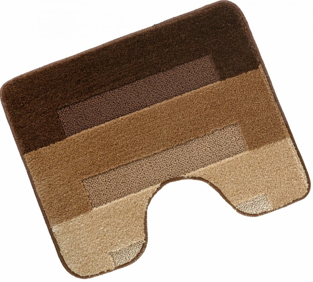 Předložka před WC s výkrojem o rozměru 60x50cm. Možno barevně dokompletovat s předložkou před vanu o rozměru 60x100cm. Rub předložek je tvořen povrchem z latexového nátěru, předložky nekloužou po koupelnové podlaze a dají se snadno udržovat vypráním na 40°C.