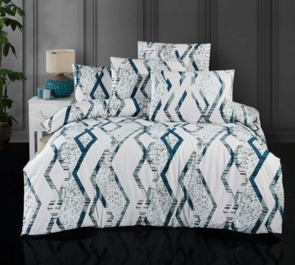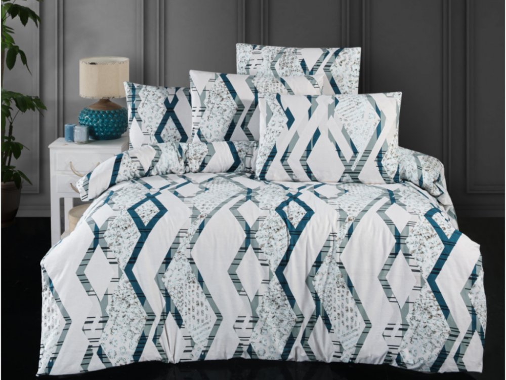 Zajímavá šedomodrá kombinace geometrického vzoru na světlém podkladě, to je dezén Labyrint. Vzor na povlaku přikrývky i polštáře je oboustranný. K tomuto vzoru doporučujeme prostěradlo barvy bílé, šed