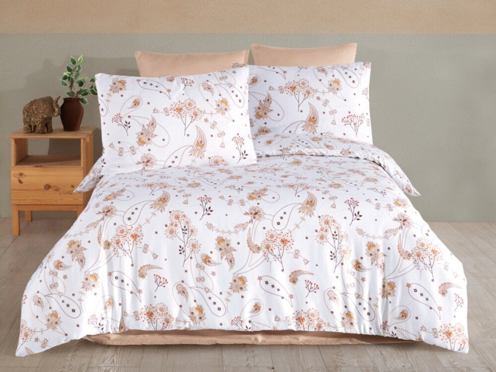 Vneste do své ložnice harmonii a klid s povlečením, které spojuje eleganci a přírodní motivy. Na světlém podkladu se jemně rozprostírají květy, lístky a stylizované ornamenty v teplých odstínech béžov