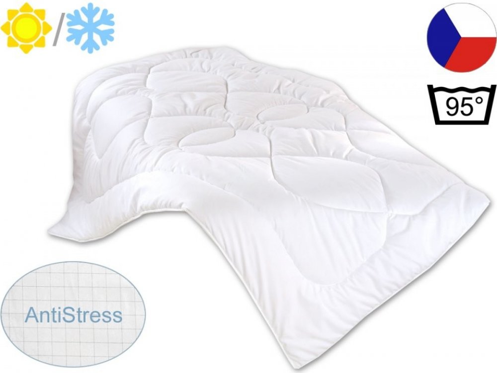 Prodloužená přikrývka je výjimečná měkkostí, lehkostí, vzdušností a příjemnou hřejivostí. Při spánku se krásně obemkne kolem celého těla a přispivá tak k pohodlnému a nerušenému spánku. Díky speciální povrchové úpravě s antistatickými carbonovými vlákny je spánek v přikrývkách AntiStress uvolněnější a klidnější.