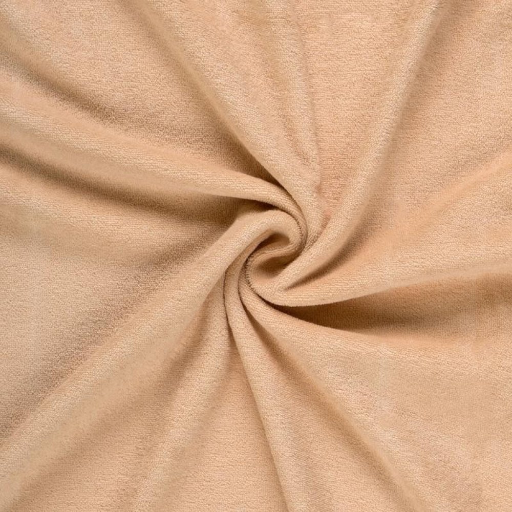 Napínací froté prostěradlo světle béžové je vyrobeno z kvalitní froté pleteniny o plošné hmotnosti 180g/m2. Pletenina je vyrobena z na omak velmi příjemných a jemných česaných přízí, díky nimž prostěradlo neškrábe a je příjemné na omak.
