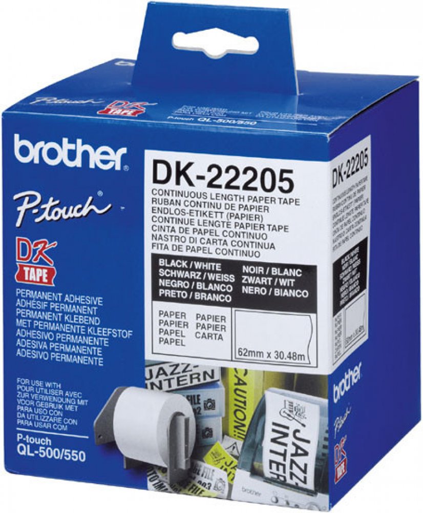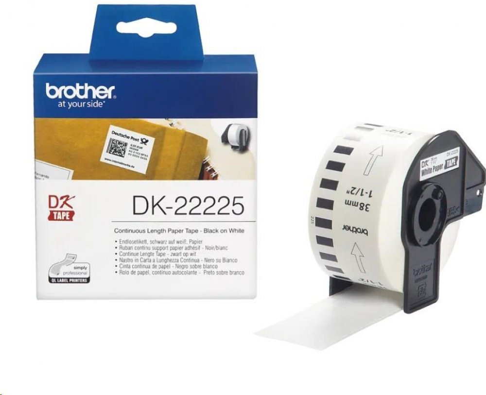 Originální kontinuální páska Brother DK-22225 nabízí rychlé a jasné značení kdekoli.