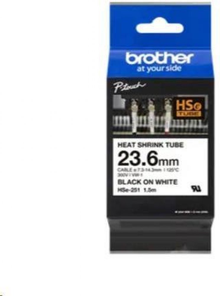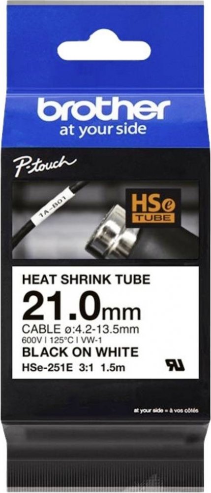 *Páska se smrští v poměru 3:1; 50% nebo více v průměru; Doporučená teplota 110 - 140 stupňů Celsia. Páska je ve shodě s normou UL224 pro provozní napětí, teplotu a hořlavost. Hodnocení hořlavosti VW1. Smršťovací bužírky Brother izolují do 300V.