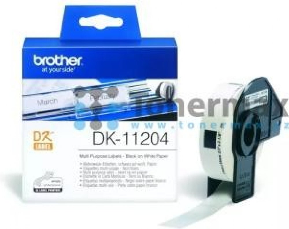 Brother DK-11204, bílá páska / černý tisk, výtěžnost 400 ks / štítek 17x54 mm. Pro tiskárny Brother QL-500, QL-500A, QL-500BW, QL-550, QL-560, QL-560VP, QL-570, QL-580N, QL-600, QL-600B, QL-600G, QL-600R, QL-650TD, QL-700, QL-710W, QL-720NW, QL-800, QL-810W, QL-810Wc, QL-820NWB, QL-1050, QL-1050N, QL-1060N, QL-1100, QL-1110NWB