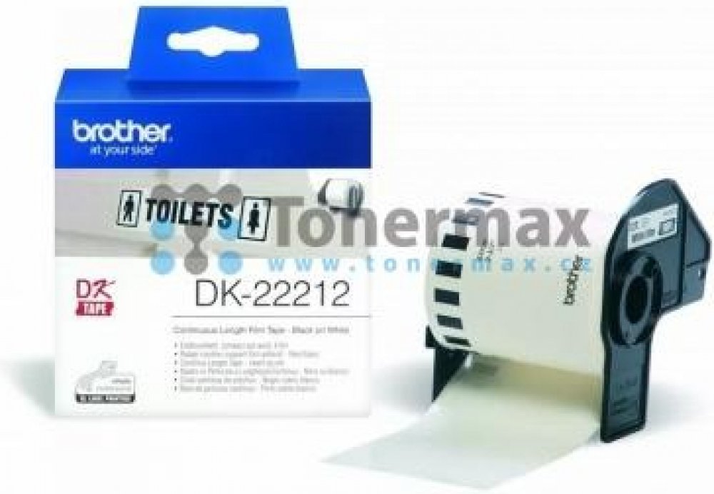 Brother DK-22212, bílá páska / černý tisk, výtěžnost délka 15,24 m / filmová role šířky 62 mm. Pro tiskárny Brother QL-500, QL-500A, QL-500BW, QL-550, QL-560, QL-560VP, QL-570, QL-580N, QL-600, QL-600B, QL-600G, QL-600R, QL-650TD, QL-700, QL-710W, QL-720NW, QL-800, QL-810W, QL-810Wc, QL-820NWB, QL-1050, QL-1050N, QL-1060N, QL-1100, QL-1110NWB