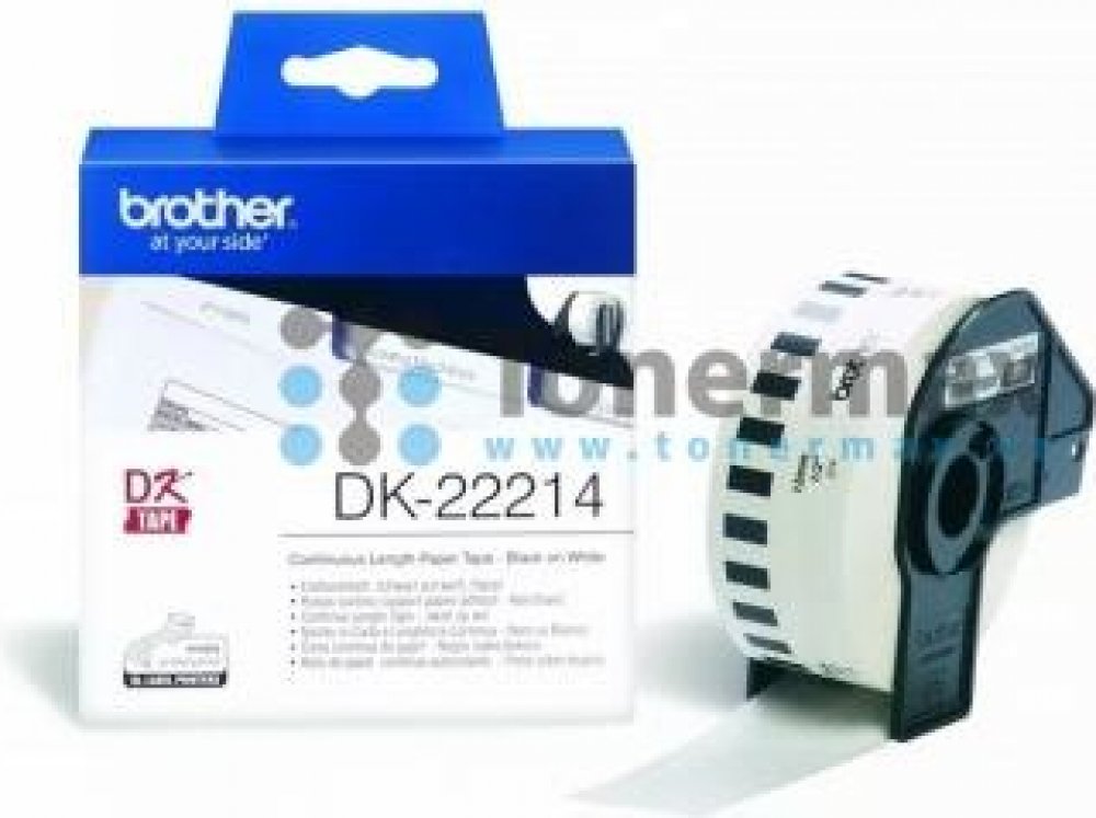 Brother DK-22214, bílá páska / černý tisk, výtěžnost délka 30,48 m / filmová role šířky 12 mm. Pro tiskárny Brother QL-500, QL-500A, QL-500BW, QL-550, QL-560, QL-560VP, QL-570, QL-580N, QL-600, QL-600B, QL-600G, QL-600R, QL-650TD, QL-700, QL-710W, QL-720NW, QL-800, QL-810W, QL-810Wc, QL-820NWB, QL-1050, QL-1050N, QL-1060N, QL-1100, QL-1110NWB
