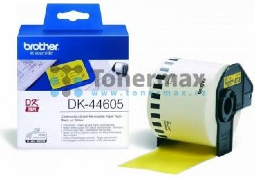Brother DK-44605, žlutá páska / černý tisk, výtěžnost délka 30,48 m / filmová role šířky 62 mm, snadno odstranitelné. Pro tiskárny Brother QL-500, QL-500A, QL-500BW, QL-550, QL-560, QL-560VP, QL-570, QL-580N, QL-600, QL-600B, QL-600G, QL-600R, QL-650TD, QL-700, QL-710W, QL-720NW, QL-800, QL-810W, QL-810Wc, QL-820NWB, QL-1050, QL-1050N, QL-1060N, QL-1100, QL-1110NWB