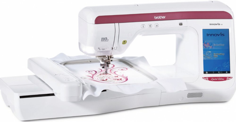 Nadčasový vyšívací stroj s velkou vyšívací plochou, přehledným velkým podsvíceným dotykovým displejem, automatickým odstřihem, pákou, LED osvětlením. - Vysoce komfortní vyšívací stroj