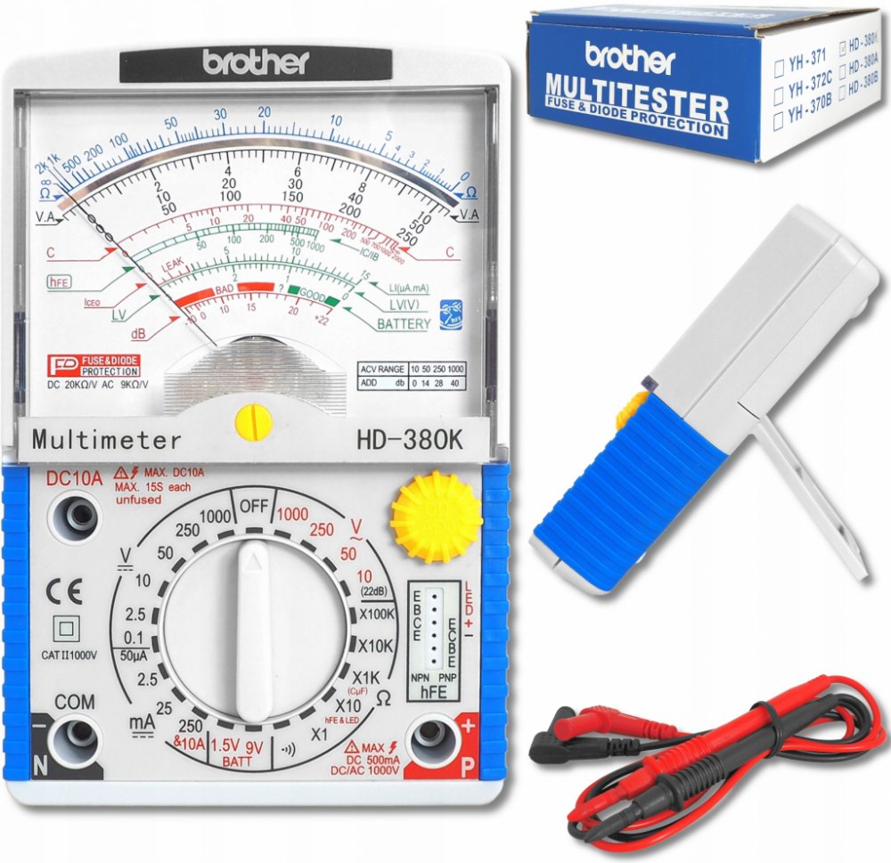Vynikající kvalitní analogový měřič značky Brother. Umožňuje měření stejnosměrného napětí, měření střídavého napětí, měření intenzity stejnosměrného proudu a měření odporu, navíc je snadno ovladatelný.